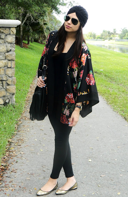 Sorry for the lack of posts as I have been extremely busy with work, nothing too fab so don't feel left out. I wear a lot of black to work, so to not feel so dark I try to add some element of color. I am really loving the floral trend lately hence my choice of this kimono I picked up at H&M in NYC late last year. To take the look from simple to interesting...I added the turban which I also purchased at that same time. I've been obsessed with turbans since Prada debuted them on the runway some years ago! Thanks for stopping by! Given I'm off for the next two days I'll sure be making some posts.